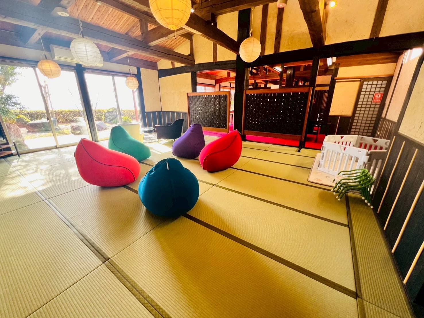 ヨギボー、TV、チェア、テーブル、ベビーサークル完備!